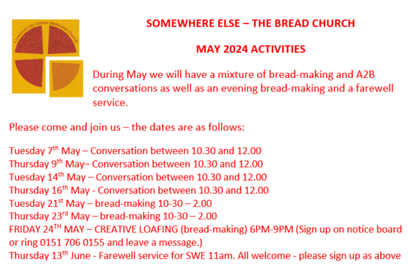 SWE has never been about the building, but always about the people, with the influence of this, always fragile, community reaching across the world as well as here in the Liverpool District. Our recipe of offering an experience of Christ through the outrageous hospitality of baking and sharing bread has been transformational for so many who have crossed our threshold.